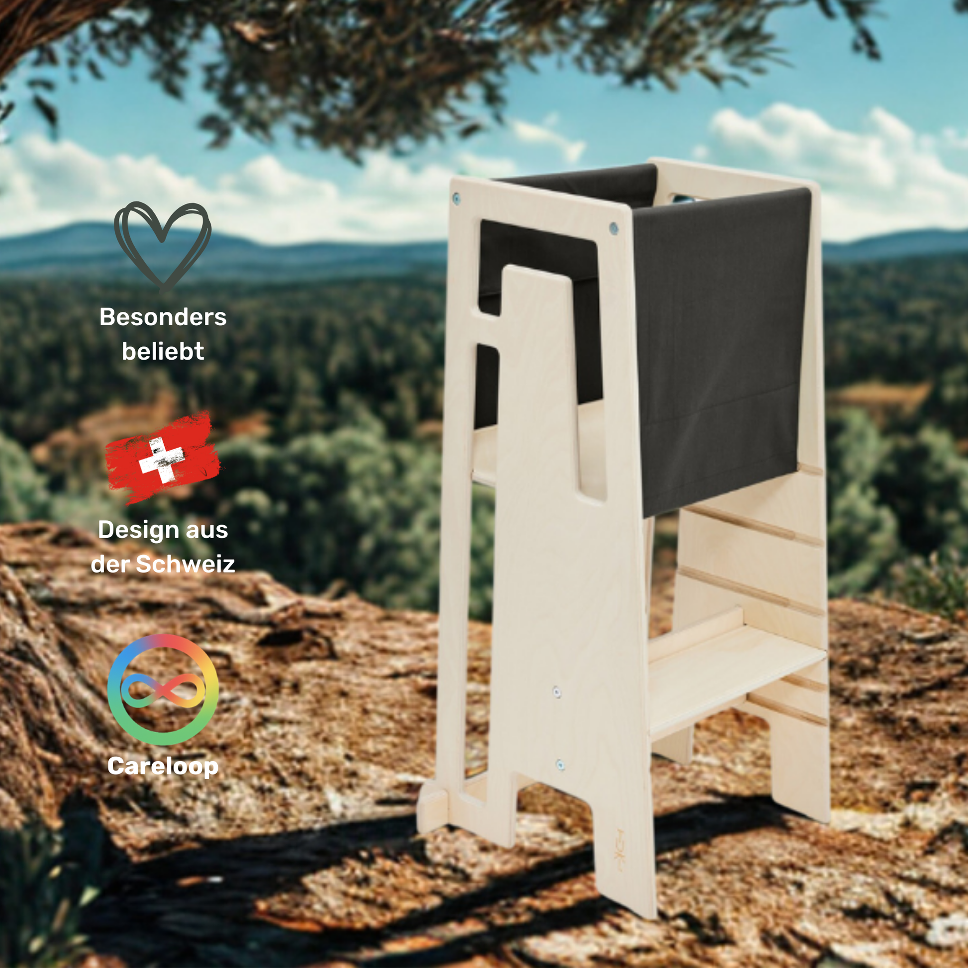 With the Tuki® Discovery Cloth, the Tuki® Learning Tower is closed on all four sides. This means the Tuki® Learning Tower can be used from the age of 9 months.